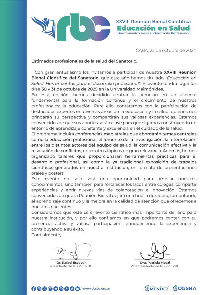 Fecha: 30 y 31 de Octubre Universidad Maimónides - Hidalgo 775, Cdad. Autónoma de Buenos Aires Contacto: bienal@obsba.org.ar Inscripción Talleres con inscripción Cronograma de actividades(próximamente)